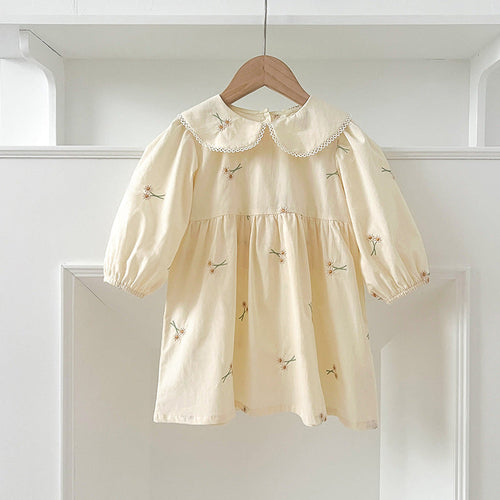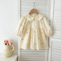 Adorable Apricot Daisy Design: This dress features a charming apricot hue adorned with delicate daisy prints, making it a perfect choice for your little one's sunny days and special occasions.